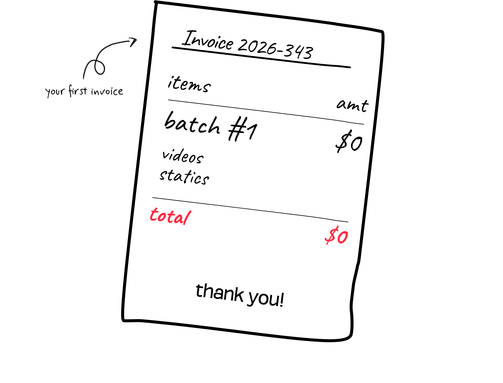 Your first batch is on us. No payment, no commitment. You get to see the quality and workflow first, then decide if you want to continue.